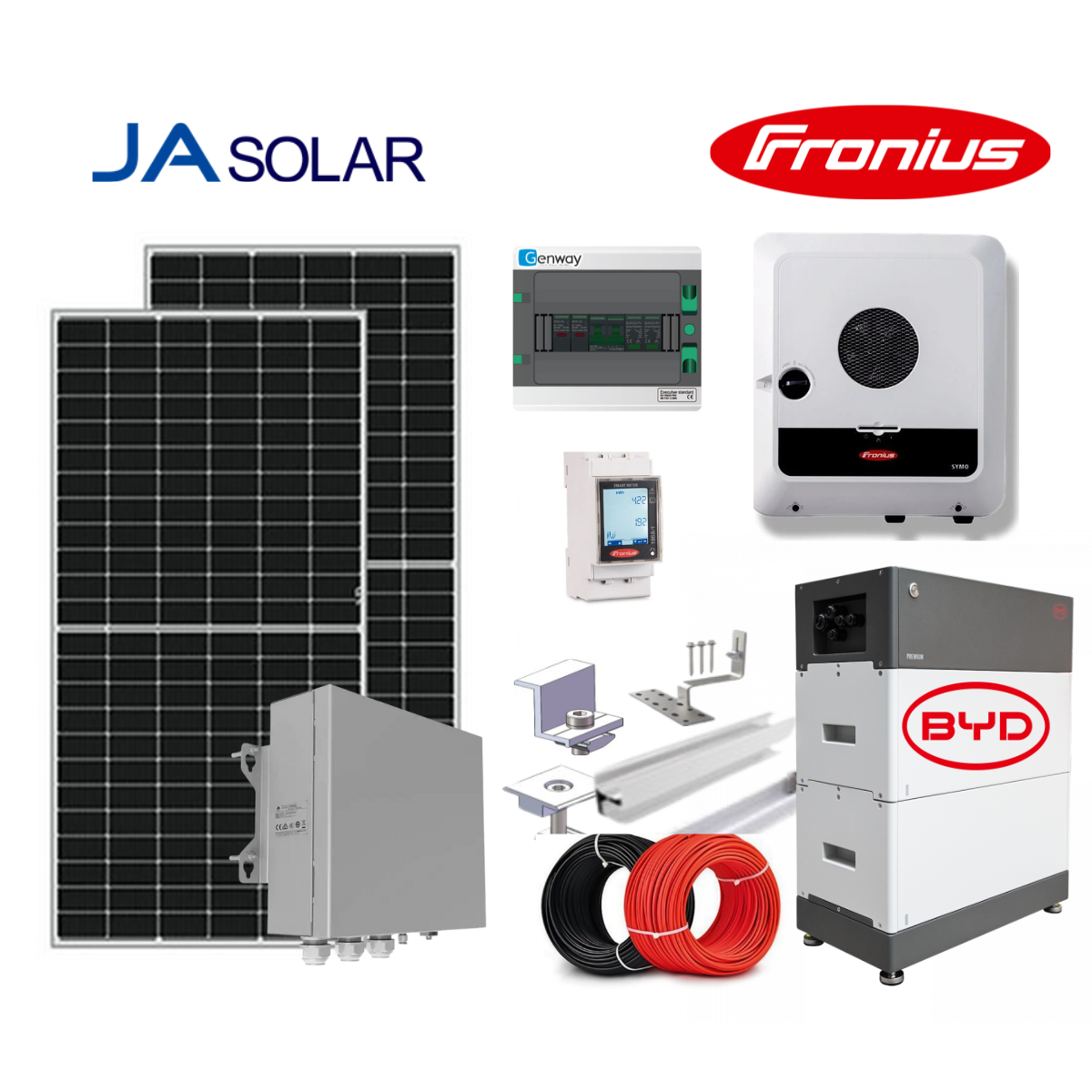 Kit sistem fotovoltaic hibrid- panouri fotovoltaice 18,65kWp hibrid cu montaj inclus, monofazat, trifazat, panouri JA Solar, acumulator 11kWh BYD, invertor Fronius